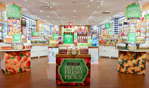 2014 spring floor set marketing design, launching the Spring Street Sweet Shop lines of hand soap and home fragrance.